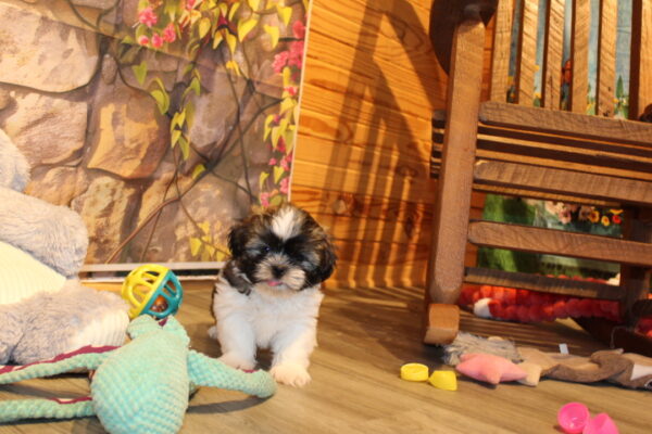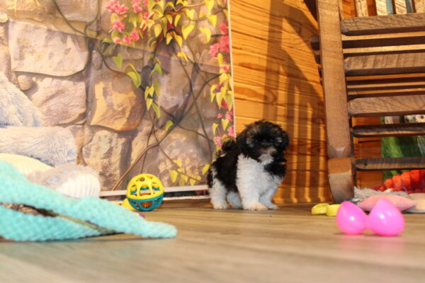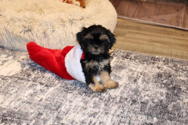 Rex is such a cute little boy at 8 weeks and 4 days old . I took these pictures today on 4/12/26. Rex really loved to pose for my pictures. He has the cutest dark face and he is so lovable. This age/stage is such a fun stage for little Shih-tzu puppies. They are for sure little go getters at this age. They run play, eat, nap and repeat. . Plus they love the little toys. They still sleep alot at this age.